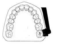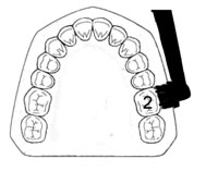 Immer an der selben Stelle mit dem Putzen beginnen und durch fortlaufendes Zählen mit der elektrischen Zahnbürste von Zahn zu Zahn gehen! Je Kiefer von Außen und von Innen. Zum Schluss über die Kauflächen putzen.